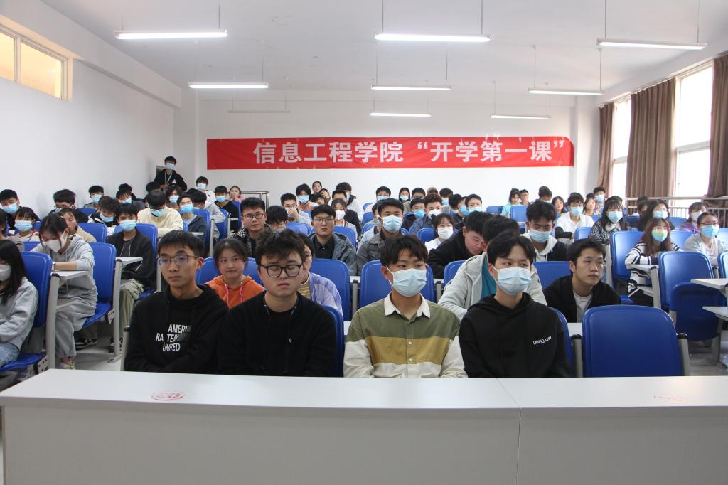 3月9日晚,信息工程学院在花溪校区笃学楼组织开展2022年春季学期“开学第一课”。信息工程学院党委书记蒋艳授课,学院班子成员、各科室负责人、师生代表120余人听讲,学院学生工作办公室副主任于付连主持活动。