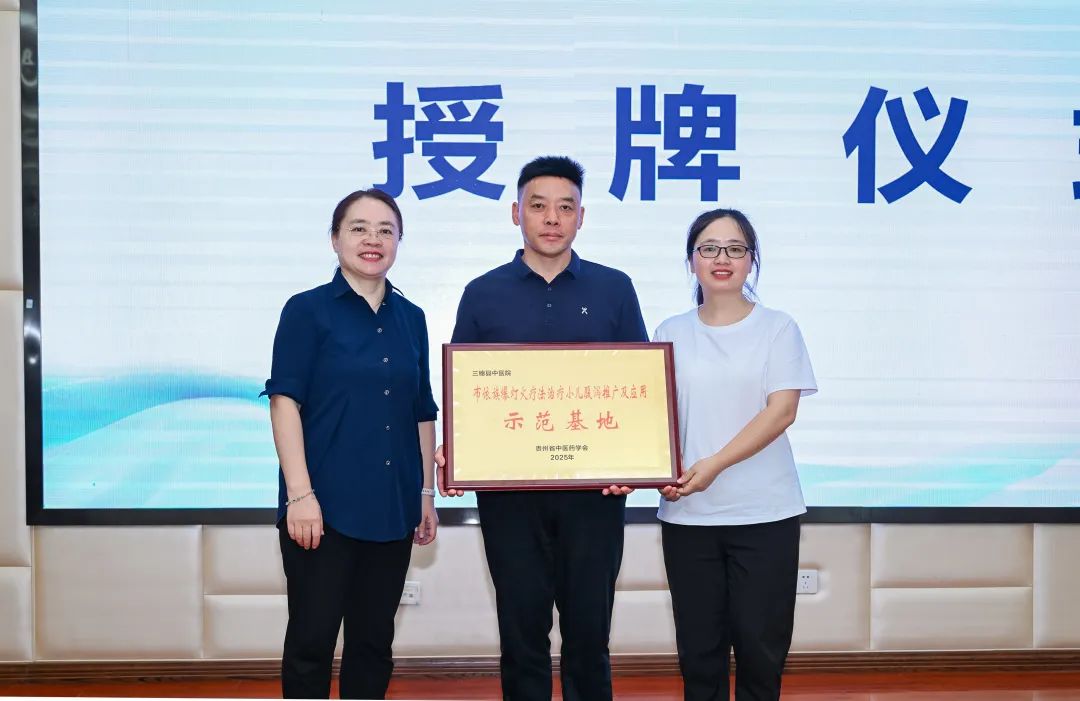 省中医儿科医疗质量控制中心主任、我校第二附属医院儿科主任陈竹致辞,并向三穗县中医医院授“布依族爆灯火疗法治疗小儿腹泻临床推广及应用示范基地”牌匾。三穗县医共体总医院副院长刘宏军致辞,云南中医药大学教授熊磊线上致辞。